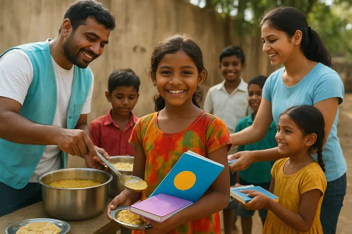- The Power of Education: We are passionate about promoting education among children aged 0-16. We support their learning journey by distributing essential educational materials such as books, notebooks, stationery, school bags, uniforms, and digital learning tools.